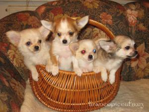Každý vrh velice pečlivě plánuji. Ověřuji si, jaké potomstvo plánovaní rodiče dávají a snažím se vyvarovat chyb, které se ve vrhu mohou vyskytnout. Velice mi přitom pomáhá naše čivaví DATABÁZE a tištěná plemenná kniha. Štěňátka se nám rodí v bytě a jsou tam také po celou dobu odchovu. Je to proto, aby byla socializovaná a zvyklá na normální ruch domácnosti. Pokud to počasí dovolí, učím je venčit na zahradu, kde se mohou do syta vydovádět na travičce. Štěňátka u nás zůstávají nejméně do 9. týdnů a jsem nejradši, když od nás odcházejí ještě déle a k tomu už kompletně očkovaná. Mají aspoň dost času si se sourozenci pohrát a naučit se správným psím vztahům. Každé štěňátko je pečlivě odčervované a očkované těmi nejlepšími zahraničními vakcínami. Je jim vystaven pet passport a každé dostane svůj rodokmen. Při odchodu všichni dostanou „výslužku“, to znamená granulky konzervičky a hračky. Pečlivá smlouva je samozřejmostí.